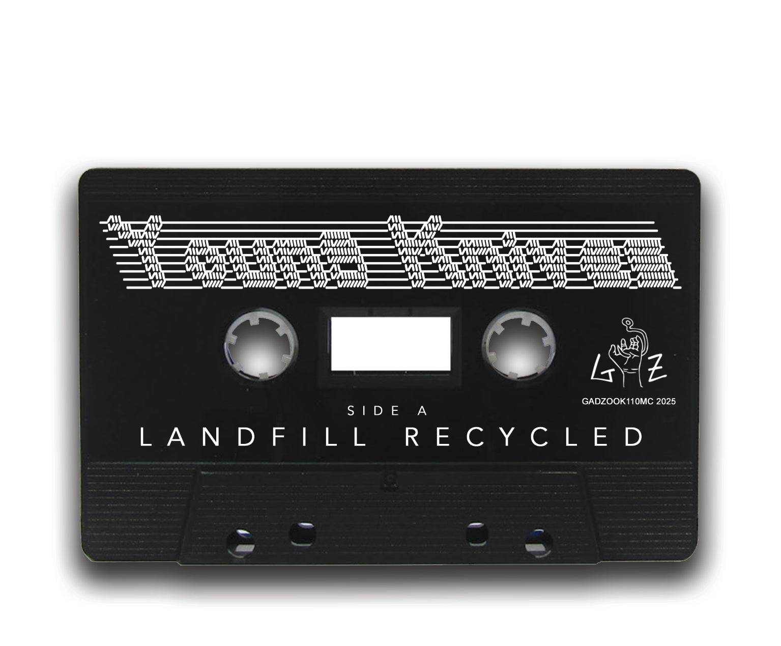 Cassette made with recycled plastic and all songs are recycled too, well kind of reworked, but you get it. Plus it's called LANDFILL RECYCLED to make it more confusing
